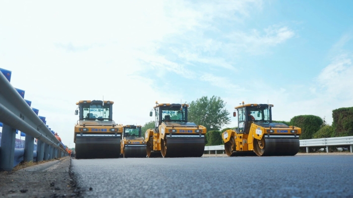 随后,由XD133S钢轮压路机进行压实和收面: