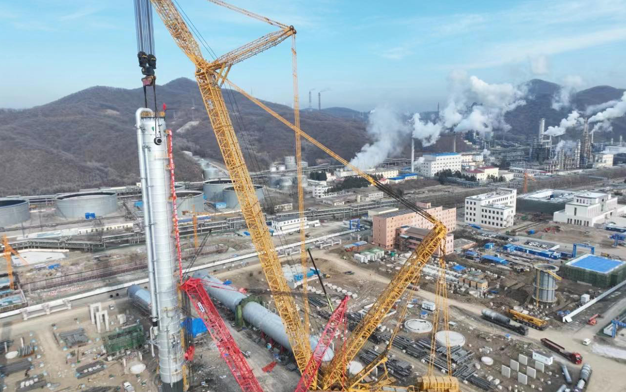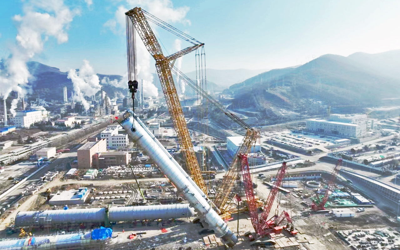 本次吊装对象为直径6.6米,高90.6米,总重1160.5吨的乙烯塔,是该项目年产120万吨乙烯装置关键的5台超限塔器之一。