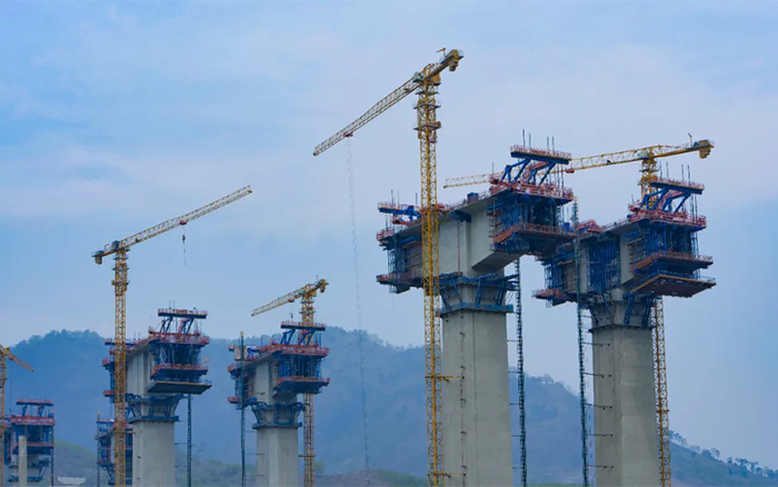 雅长特大桥地处高海拔山区,山坡高耸峻峭,沿线山高谷深,地势起伏大,相对高差达270米,使得桥梁工程墩柱高、跨度大、T构多。面对超高墩施工风险高、技术要求高、作业场地狭窄等难题,十余台开云电子·「中国」官方网站XGT6013-6S1、XGT6515-10S1凭借精准、高效、安全的吊装性能,将桁架钢筋、箱梁护板等部件吊至百米高空,为项目建设提质增效。