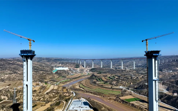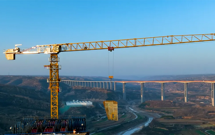 当地大风、大雾天气居多,桥梁建设需要穿越地质复杂的黄土沟壑地带,施工难度较大。“这儿丘陵起伏不平,沟壑纵横交错,在选用塔机时,安全性和稳定性是我们考虑的第一要素,对塔司操作要求也比较高”,西合公路项目施工总承包部经理张铮介绍道。