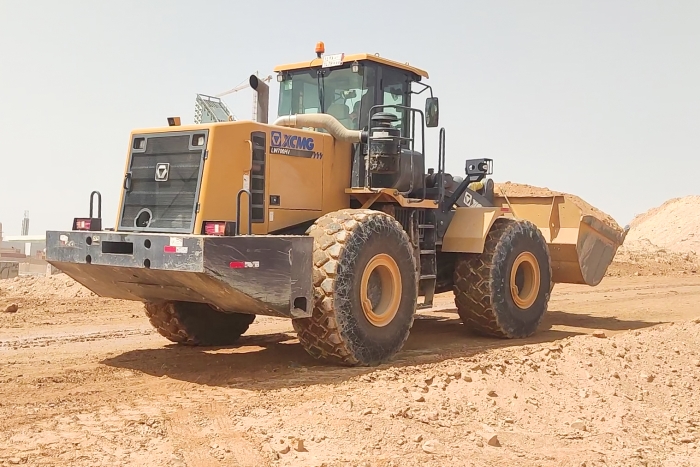 将一斗斗满铲土方准确卸入卡车,它正为当地知名建筑公司效力,为道路、桥梁、工厂等项目建设贡献力量。