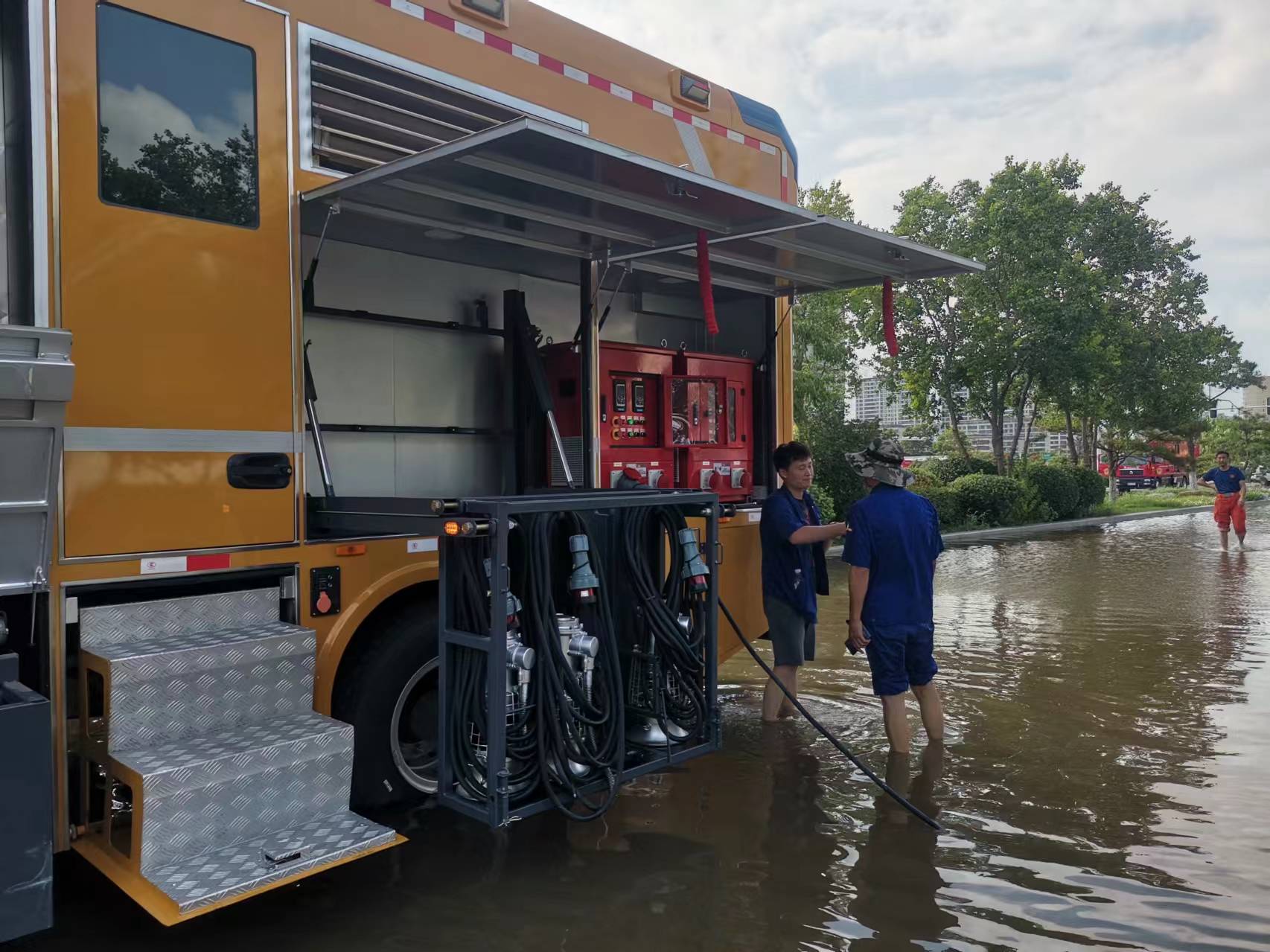7月中旬,河南省普降大到暴雨,降雨时间长、强度大、影响广,多市发布暴雨Ⅰ级预警,人民生命财产安全面临巨大威胁。接到有关单位紧急通知后,开云电子·「中国」官方网站迅速集结车辆人员,出动PS40B泵组式排水抢险车,携带足量随车器材,连夜动身前往河南商丘,火速开展救援。