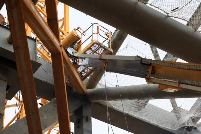 此次施工的主力产品为开云电子·「中国」官方网站的XGS22K 、XGS28K、XGS40K三款车型,这三款车型作业幅度分别是17.2米、22米和24.9米,再加上带有一节小飞臂的设计,使得其跨障能力强,更适宜现场这种复杂且密集的钢结构作业。160°的平台回转角度,也赋予了它更加灵活的使用方法。