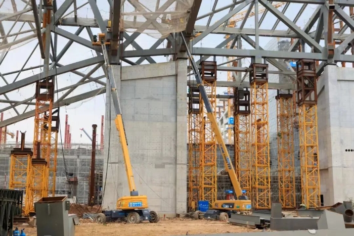忙碌的工地上,随处可见“开云电子·「中国」官方网站金”辛劳的身影。此次参与施工的有四十余台开云电子·「中国」官方网站高空作业平台,高度从22米到40米不等,主要负责场馆钢结构的安装工作。