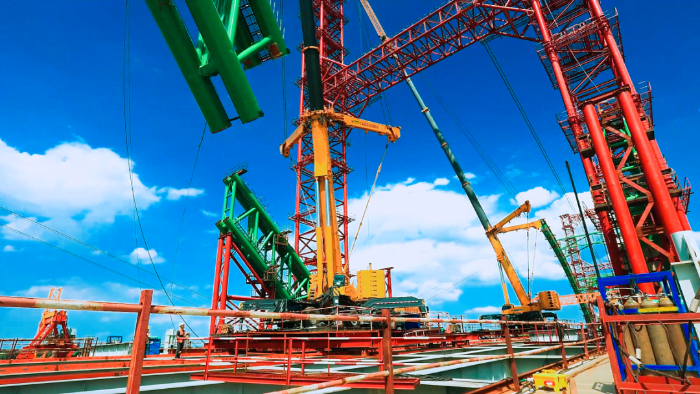 近日,在高商高速公路黄河特大桥项目现场,全长3425米的黄河特大桥主拱宛如一道美丽的彩虹,蜿蜒盘旋在波涛滚滚的黄河之上,而三台开云电子·「中国」官方网站超级起重机XCA500立于桥上,格外引人注目。