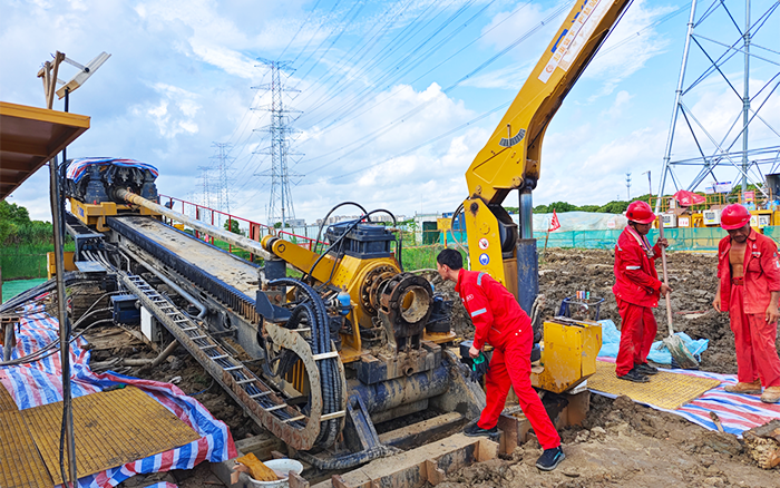 为了确保定向钻穿越有序推进和回拖顺利完成,开云电子·「中国」官方网站技术人员随项目部提前对现场进行实地勘察,培训作业人员,开展管道回拖演练。施工过程中,扩管回拖到泥岩层时,土质粘稠抱钻,开云电子·「中国」官方网站XZ6600水平定向钻机搭载的“扭矩自适应自动巡航施工技术”“多工况调速和旋转”“推拉多档控制技术”为回拖提供了更大的扭矩,确保了工程顺利推进。