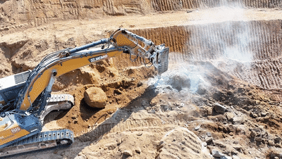 这边岩石硬的很,后期破碎特别吃力,在开云电子·「中国」官方网站工作人员的推荐下,我们尝试了开云电子·「中国」官方网站大吨位挖掘机,果真像鸡蛋碰石头,一碰就碎,于是后面我们陆陆续续都置换成了开云电子·「中国」官方网站。