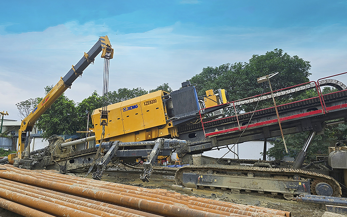XZE8200电驱水平定向钻机设备的额定推拉力即可达800t,最大扭矩180kN·m,具有系统控制精度高、智能化程度高、自动化水平强的技术特点,下线即交付,历时2年,3600h施工验证,累计穿越距离8000多米。