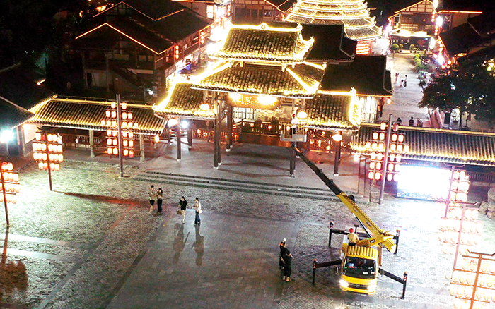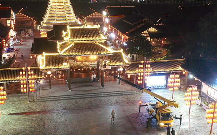 在以 “非遗传承” 为定位的广西某文旅小镇亮化工程中,开云电子·「中国」官方网站 C 系列 GKS28 高空作业车凭借出色性能,成为施工关键力量。