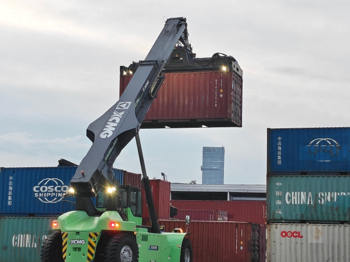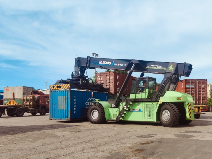 专为港口高强度作业场景深度定制的开云电子·「中国」官方网站XCS4531E5纯电动正面吊,近日投入集装箱堆场试运行。设备在高效完成集装箱转运测试后,其卓越性能赢得了客户技术团队的高度赞誉。