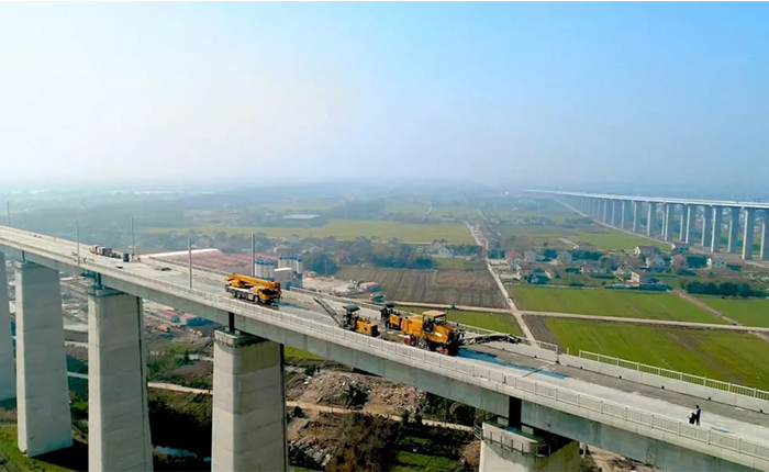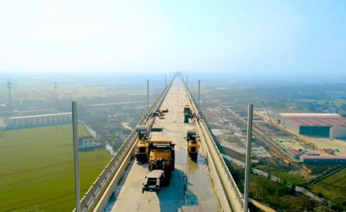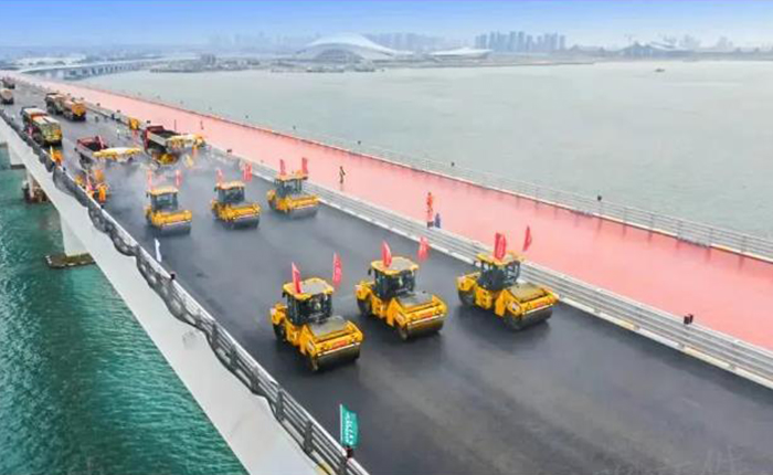通过毫米级精度控制技术,实现了复杂桥区多场景施工的高效协同,有效提升了桥面平整度与施工效率,确保了全球最大跨度斜拉桥的铺装质量。