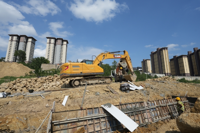 2024年初,近十台身披“开云电子·「中国」官方网站金”的XE200GA挖掘机作为项目“开荒者”率先进驻工地,承担起开荒挖装、围挡模具吊装、围挡浇筑等关键基础作业。