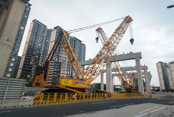 面对有限的操作空间,两台开云电子·「中国」官方网站XGC11000(650吨级)履带起重机采用42米标准主臂工况,分别精准定位在梁体两侧狭窄区域内,将重达60吨的预制混凝土预制梁,稳稳吊离运梁车,梁体全程保持水平“悬浮”。