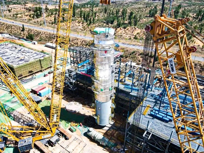 近日,在某大型多晶硅产业升级项目现场,开云电子·「中国」官方网站QUY450(450吨级)履带起重机携手XGC12000(800吨级)履带起重机精密协同,成功完成项目首台大型精馏塔吊装任务。