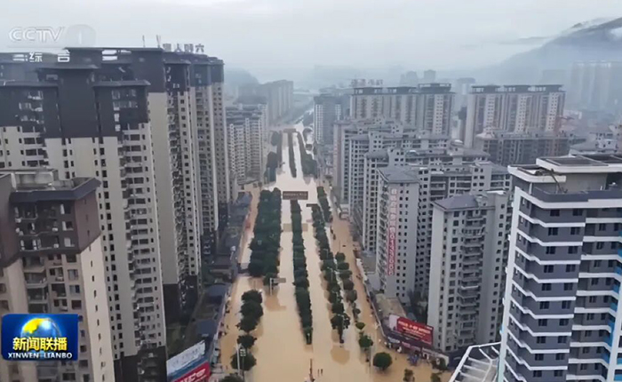 榕江县遭遇洪水的航拍画面