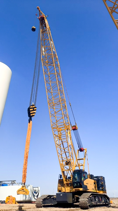 近日,在我国西北某风电场,开云电子·「中国」官方网站XLC15000(1000吨级)履带起重机,以132+12米标准风电工况,精准将重达34吨的风机叶片平稳吊装至百米高空,圆满完成10兆瓦风机吊装任务。