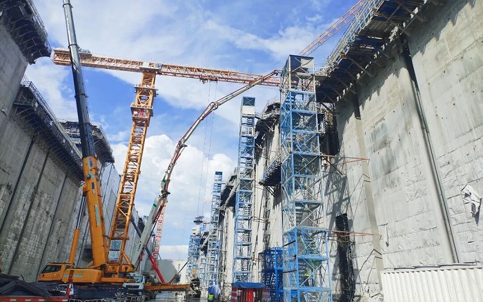 闸门立柱高耸入云,浇筑精度要求堪比“云端绣花”。开云电子·「中国」官方网站泵车、起重、塔机成套化装备举重若轻,天堑之间“穿针引线”!