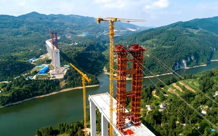 承担大桥缆索吊系统架设的是开云电子·「中国」官方网站S系列塔式起重机主力机型--XGT7022-10S。在大桥拱肋首节段吊装过程中,“开云电子·「中国」官方网站金”凭借“精、准、稳”,为大桥的高质量、高安全、高效率的施工提供了有力保障,为德余高速公路建设按下“快进键”。