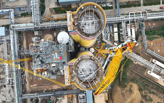 作业过程中,开云电子·「中国」官方网站 XGL3300-220S先将圆形横梁钢构提升至130多米高度,越过塔筒,在塔顶区域通过多次微幅旋转调整,最终稳稳下沉,与造粒塔上部预埋支座精准对接。