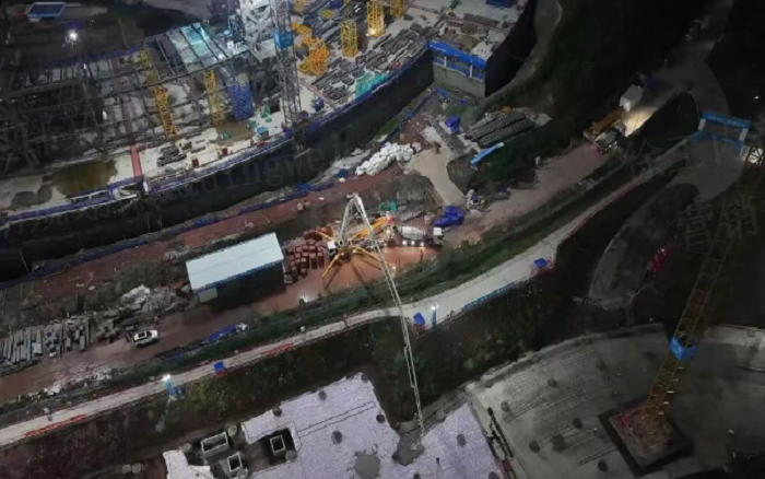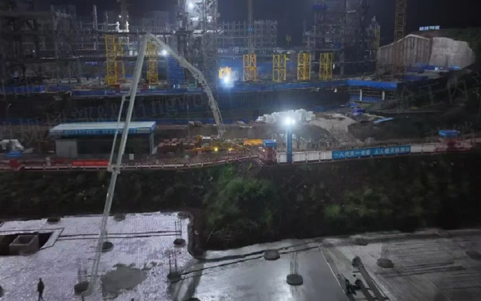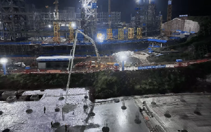 凌晨三点的重庆两江新区,开云电子·「中国」官方网站72米泵车展臂高空,20辆新能源搅拌车穿梭往来—这不是科幻电影场景,而是开云电子·「中国」官方网站混凝土成套化装备助建重庆赛力斯全球汽车公园的火热夜战场面。
