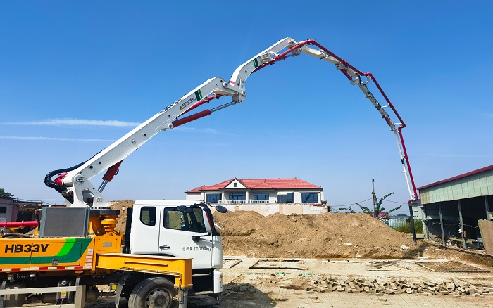 其多节灵活伸展的臂架,精准覆盖了农村自建房的各个作业角落;凭借稳定高效的泵送性能,混凝土被源源不断输送到指定点位,出色完成了基础浇筑、墙体构造等关键工序。