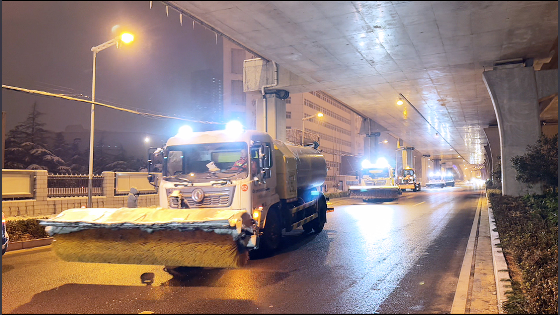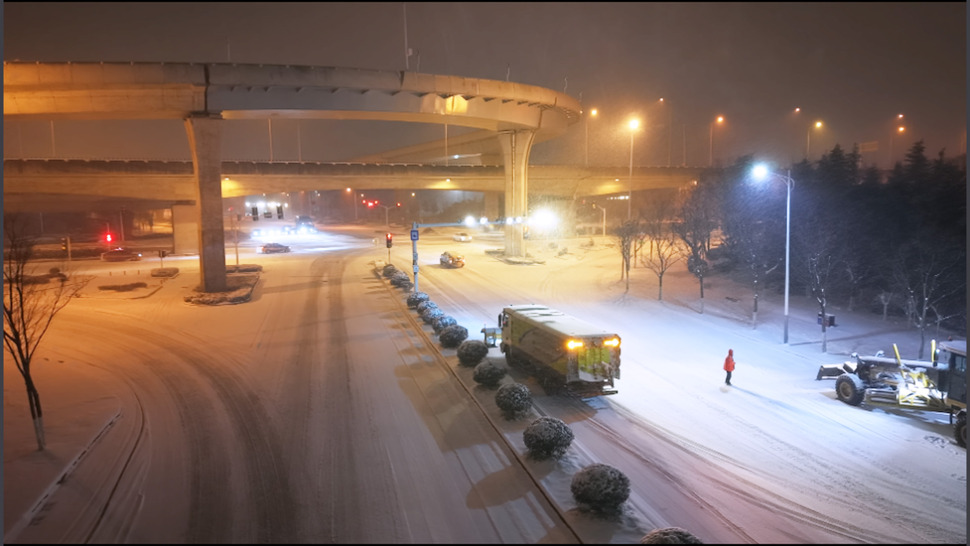 大面积路面积雪结冰