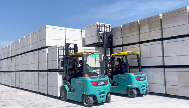 领跑行业,该企业生产节奏快、交货忙,鲲鹏电动叉车在产品的装卸、转运、堆垛等环节都扮演着重要角色。