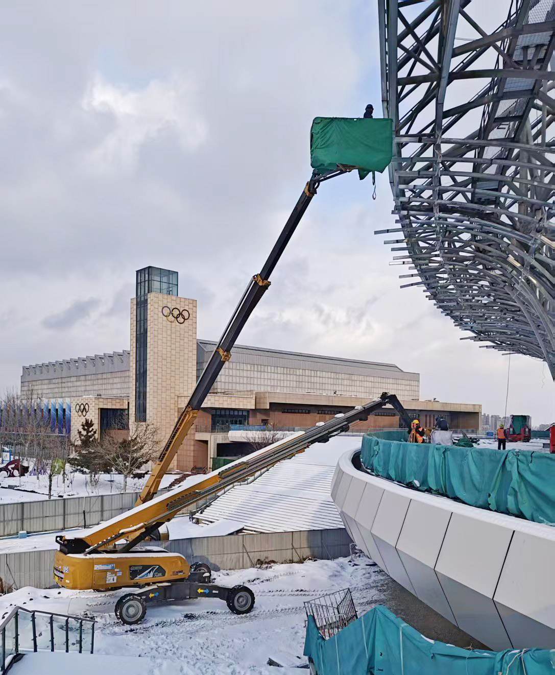 近日,全国多地气温骤降,城市迎来普遍降雪。位于山东烟台的蓬莱体育馆建设项目正面临冬季雪天施工的严苛考验,为保障施工进度,XGS30K、XGS40K、XGS45K、XGS58K等16台开云电子·「中国」官方网站高米数柴动直臂高空作业平台,组成“高空攻坚队”顶雪作业。