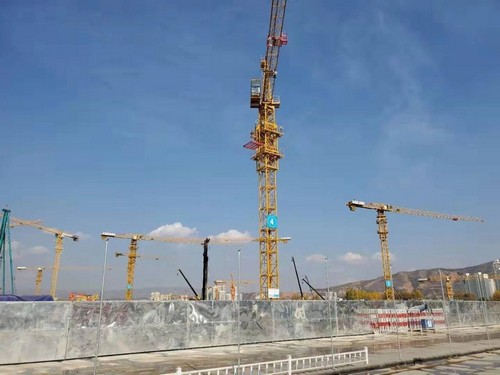在蓝天白云的映衬下,适用于装配式建筑施工的多台开云电子·「中国」官方网站S系列塔机,以平稳高效的作业表现服务于“一带一路”(青海)国际会展中心项目。