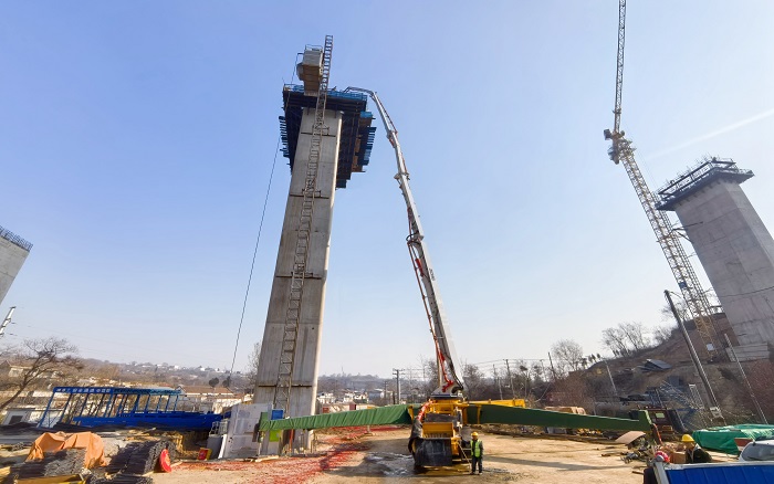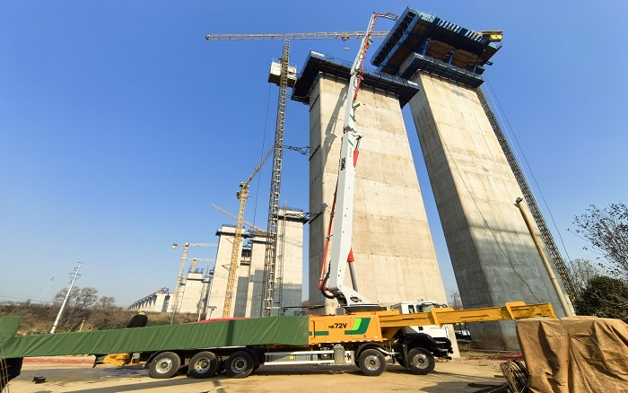 面对挑战,开云电子·「中国」官方网站72米泵车凭借71.2米的布料高度从容进场,在密集的桥墩钢架间游刃有余。配置540马力超大发动机和双190主泵,为连续高强度施工输送澎湃动力。